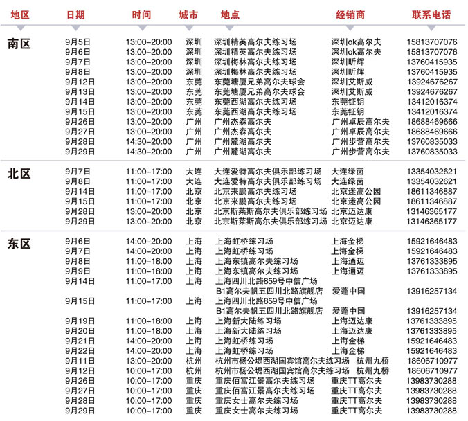 9月份耐克高尔夫Nike Golf全国试打会安排