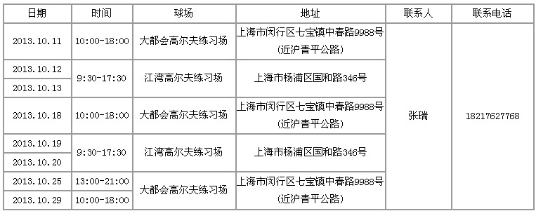 2013年十月上海地区粤升高尔夫试打会安排