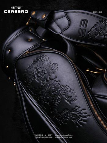 对于龙元素的运用,CEREBRO设计开发团队在中国风系列里面已有体现,那款球包是“腾龙”,以黑白为主色,金色镶边和拉链作为球包的结构区分,但是对元素本身做了较大的改变,那显然是一次成功的常识,整个球包设计简练干净,而飞腾的龙则传达出刚健有为的含义。在10月进行的中国高尔夫俱乐部赛,CEREBRO为昆明温泉俱乐部定制的“腾龙”球包随球手征战年度的冠军赛。
