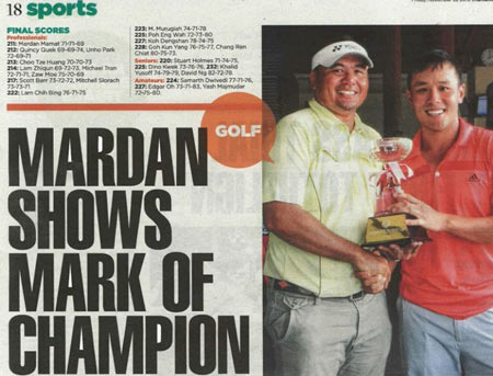尤尼克斯高尔夫签约球员,新加坡球手马丹·马马特(Mardan Mamat)收获了又一个冠军(2013 Goodpack SPGA President Cup).