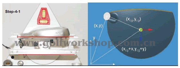 首先,将杆头固定在专业MOI测量仪器上。MOI代表着一个物体去阻抗转动的能力,专业MOI测量仪测量杆头转动到特定距离所花费的时间。花费时间愈长,MOI值就愈高。