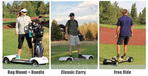 “高尔夫滑板”是一个很好掌握的电动滑板,球员们可以踩着它驰骋在高尔夫球场的草坪上,感觉像冲浪、滑雪一样,能够在从当前的一击到下一击的路上享受满满的乐趣。它还能帮忙加快打球速度,操作便捷,相较高尔夫球车对草坪的损害也比较小。