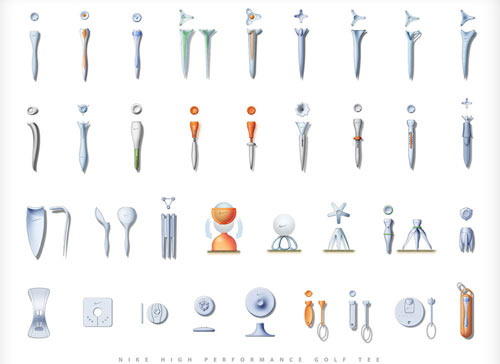 “我们努力的目标之一:重新设计高尔夫球梯,增加了的球梯高度更好的适应耐克新型大杆头一号木。我们分析了目前的球梯,包括动态原理,瞄球和其他的技术性因素。同时还征询了目标客户的意见,例如便携性、性能等。我们设计出了33个概念产品,这些极具个性的产品符合耐克的创新要求,同时还能提升运动员的击球表现。耐克目前已开始对其中的四款设计展开批量生产评估。”—Altitude Inc.