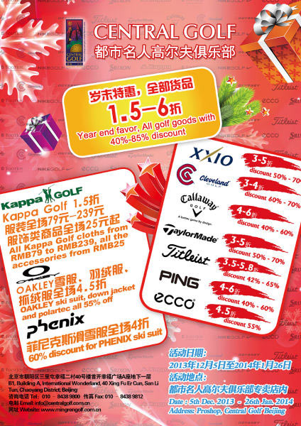 都市名人高尔夫俱乐部岁末特卖会 4.5折回馈客户