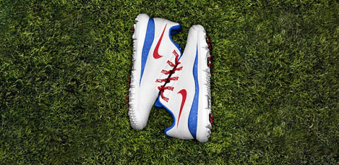 网友迪恩-汤普森设计了这款战靴,并被老虎伍兹选中。该款战靴包含红色、蓝色和白色三种颜色,设计灵感来自他支持莱德杯美国队和即将到来的奥运会,当然,也包括2014年老虎伍兹即将在松树丛参加的美国公开赛。