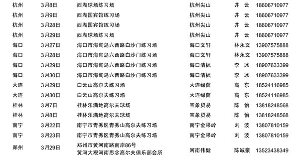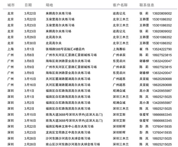 3月耐克高尔夫Nike Golf全国试打会安排