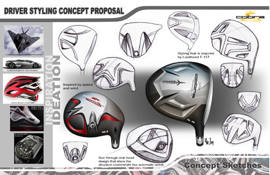 高尔夫球杆的设计和汽车设计有些类似,开始只是一个大概的轮廓勾勒(看上去有点不像球杆),然后再一步步的改进成型。在具体设计思路上会有很多种方式。