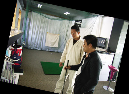 在练习场的二楼,来自香港的黄达先生把十几年潜心研究高尔夫球杆的独到心得体会,与全世界高尔夫名人、冠军“零距离”交往的感受,再结合他的手艺和电脑技术,打造出了一间精致悦目的极品高尔夫球具维修店———“轶达工房”。
