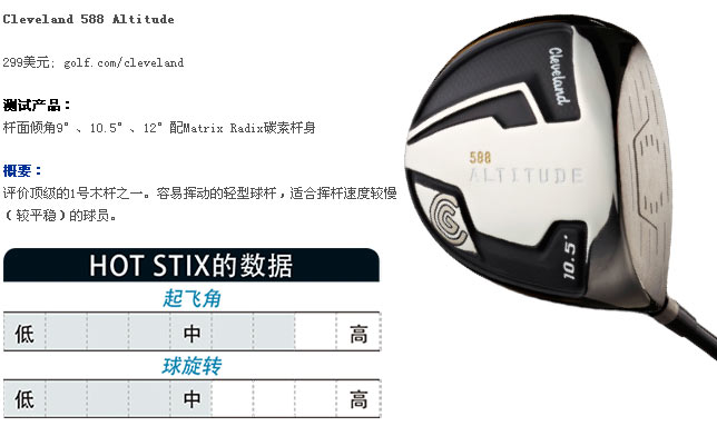 距离: 超轻型的588 Altitude能让挥杆平稳的球员提升杆头速度,打出更远的距离;大多数测试者在跟、趾部触球时也能获得相对良好的距离。