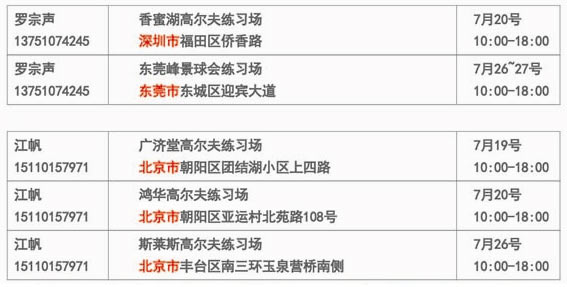 PING 高尔夫7月份北上广试打会安排