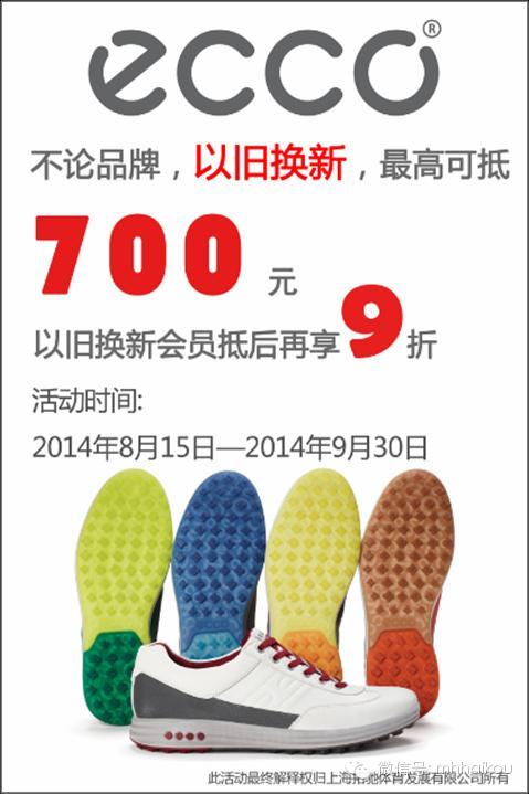 挥别过去,迎接未来! ECCO高尔夫以旧换新活动,最高折价700元,观澜湖会员更可独享折上9折尊荣。 自2014年8月15日至9月30日,只要您手里有任何品牌的旧款高尔夫鞋,即可在观澜湖Ecco专柜折价购买任何一款集“舒适、科技、时尚和创新”于一体的ECCO高尔夫鞋。 咨询电话:(86 898)68683888-62050