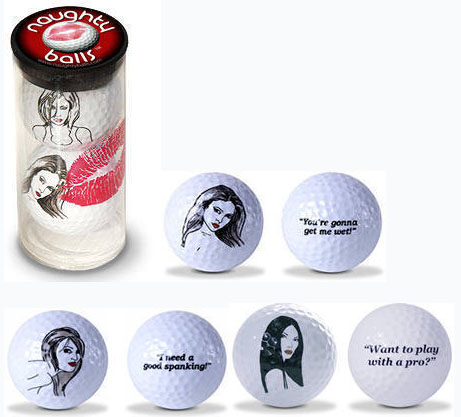例如,一个高尔夫球上写道“我想要你打我的屁股”;另一个球上写道“我想和职业高尔夫选手玩玩儿”。