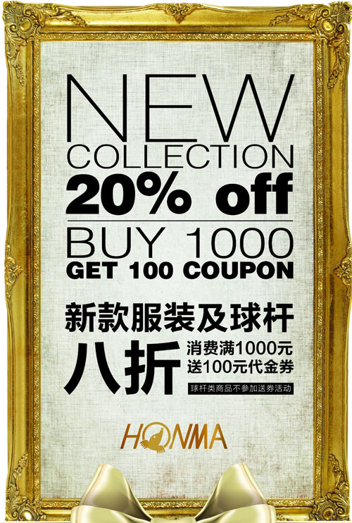 ·凡购买新款服饰和球杆即享8折优惠