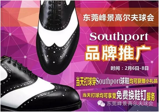 东莞峰景高尔夫球会将于2月6日至8日开展Southport品牌推广活动,指定款式惊喜折扣,免费好礼等你拿,欢迎呼朋引伴来体验、惠顾!