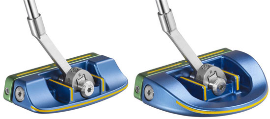 这支名为“happy“的推杆充分借鉴了可调试一号木的操作原理,不管是杆头重心,杆底、或是着地角度等,几乎除了长度之外球手们可以根据球场的情况和自己的状态调整推杆,目前这款推杆有刀背和圆锤型两款可供球友选择!