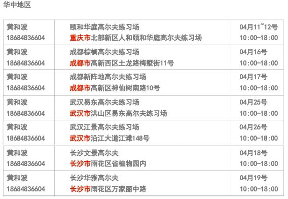 PING高尔夫2015年4月份华中地区试打安排