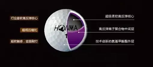 采用超软高反弹核心层、巡回赛级别的Urethane表层材质及恰到好处的超低压缩比设计,令击球时无论使用发球木、铁杆、还是推杆都拥有绝佳柔软击球触感,且操控性和稳定性俱佳。