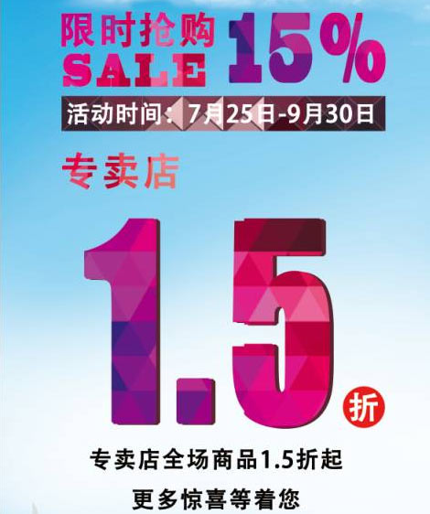“酷爽夏日,降到冰点价” 南昌保利高尔夫俱乐部专卖店夏季大促销全场1.5折起。 数量有限,抓紧时间抢购吧! 活动时间:7月25日—9月30日