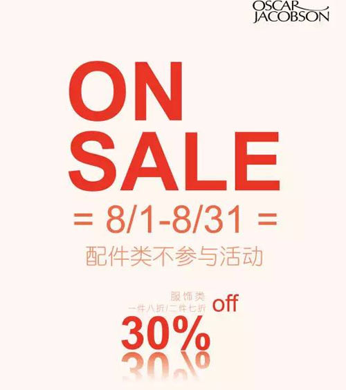 凡在远洋国际高尔夫专卖店购买OSCAR JACOBSON服饰类商品,一件八折两件七折。 欢迎广大球友进店选购! 活动时间:2015年8月1日至2015年8月31日 咨询热线:023-62552322