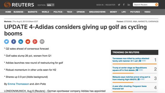 据彭博社消息,由于高尔夫部门销售未及预期,阿迪达斯(Adidas AG)可能会考虑将该部门出售。