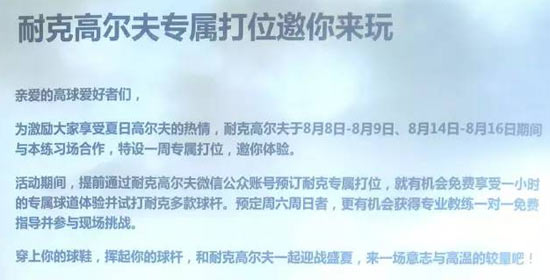 耐克高尔夫试打会盛情与您相约北京美松
